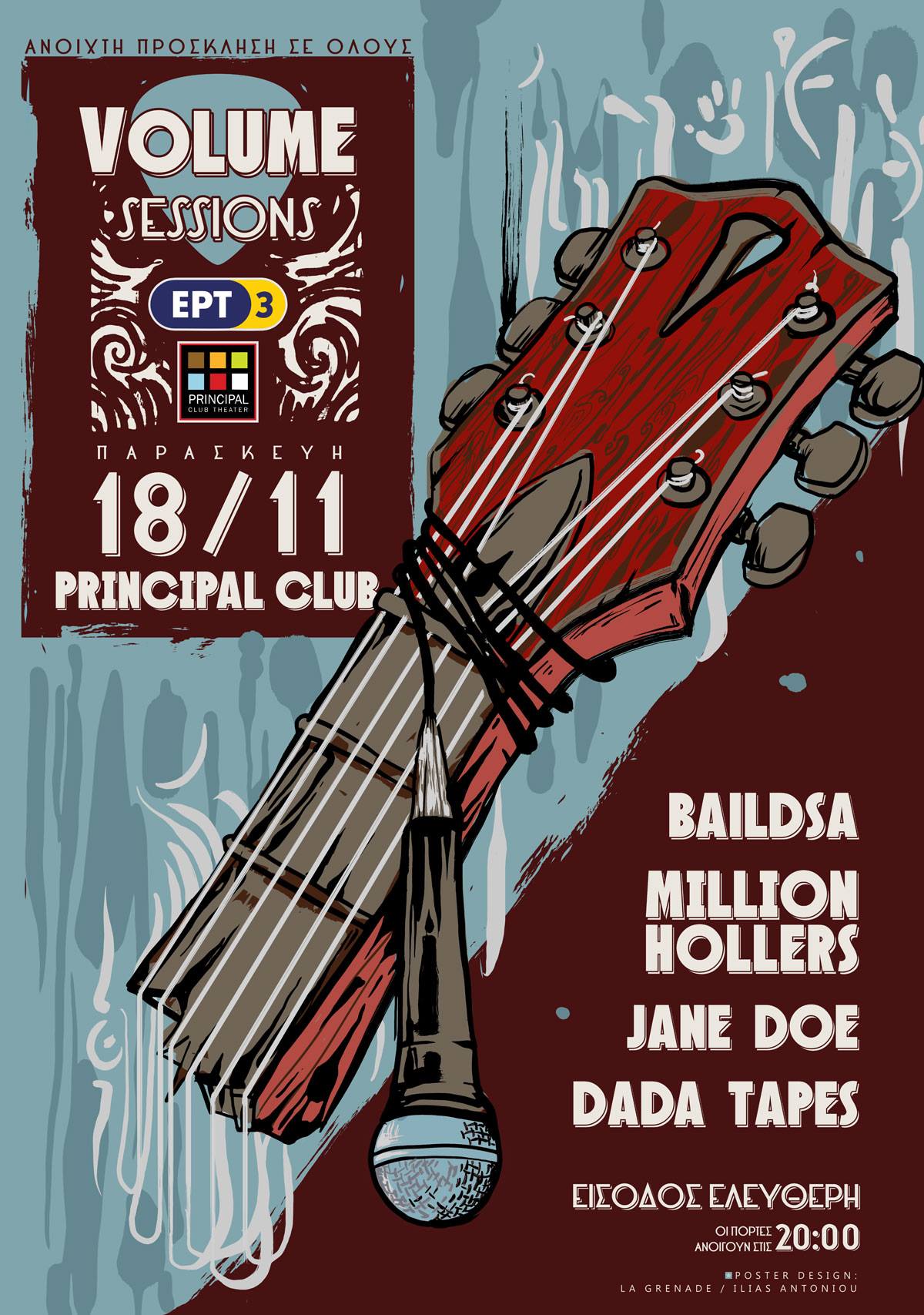 ERT3 Volume Sessions @ Thessaloniki free entrance… live recording for Volume Sessions ERT3 with BAiLdSA, Million Hollers, Jane Doe, Dada Tapes 18 November 2016 Principal Club Theater, Andreou G. 56, 54627 Thessaloníki