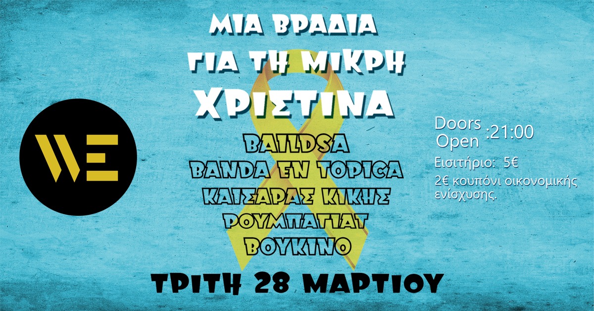 *Τα έσοδα από την πώληση των εισιτηρίων θα διατεθούν για την κάλυψη ιατρικών εξόδων και την οικονομική ενίσχυση της οικογένειας της μικρής Χριστίνας.