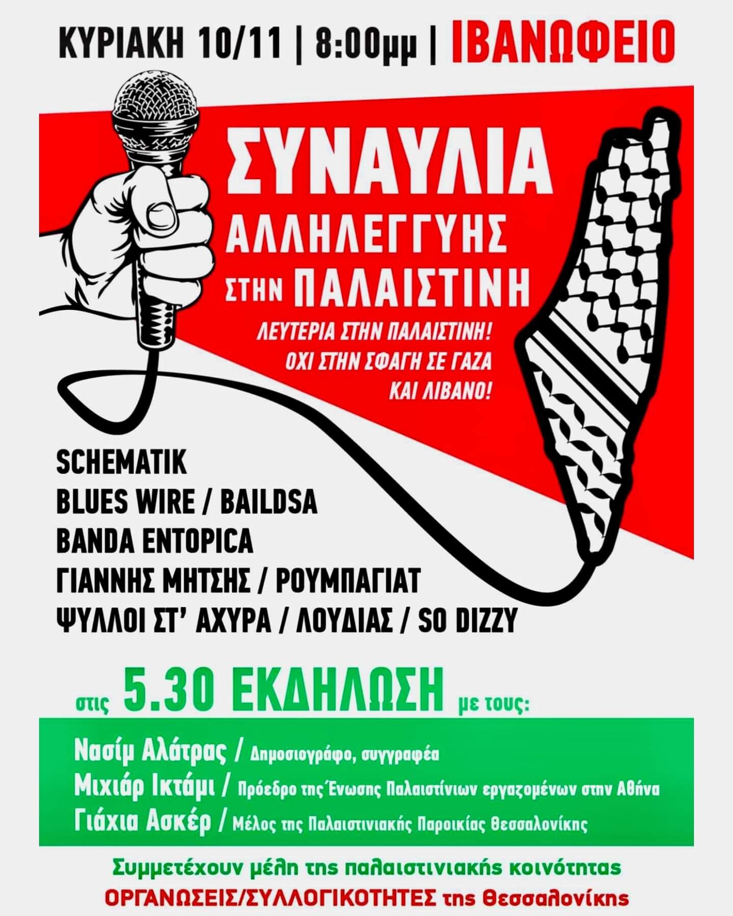 Λευτεριά στην Παλαιστίνη! Ενώνουμε τις φωνές μας ενάντια στην σφαγή σε Γάζα και Λίβανο με μια μεγάλη αντιπολεμική συναυλία στην Θεσσαλονίκη!